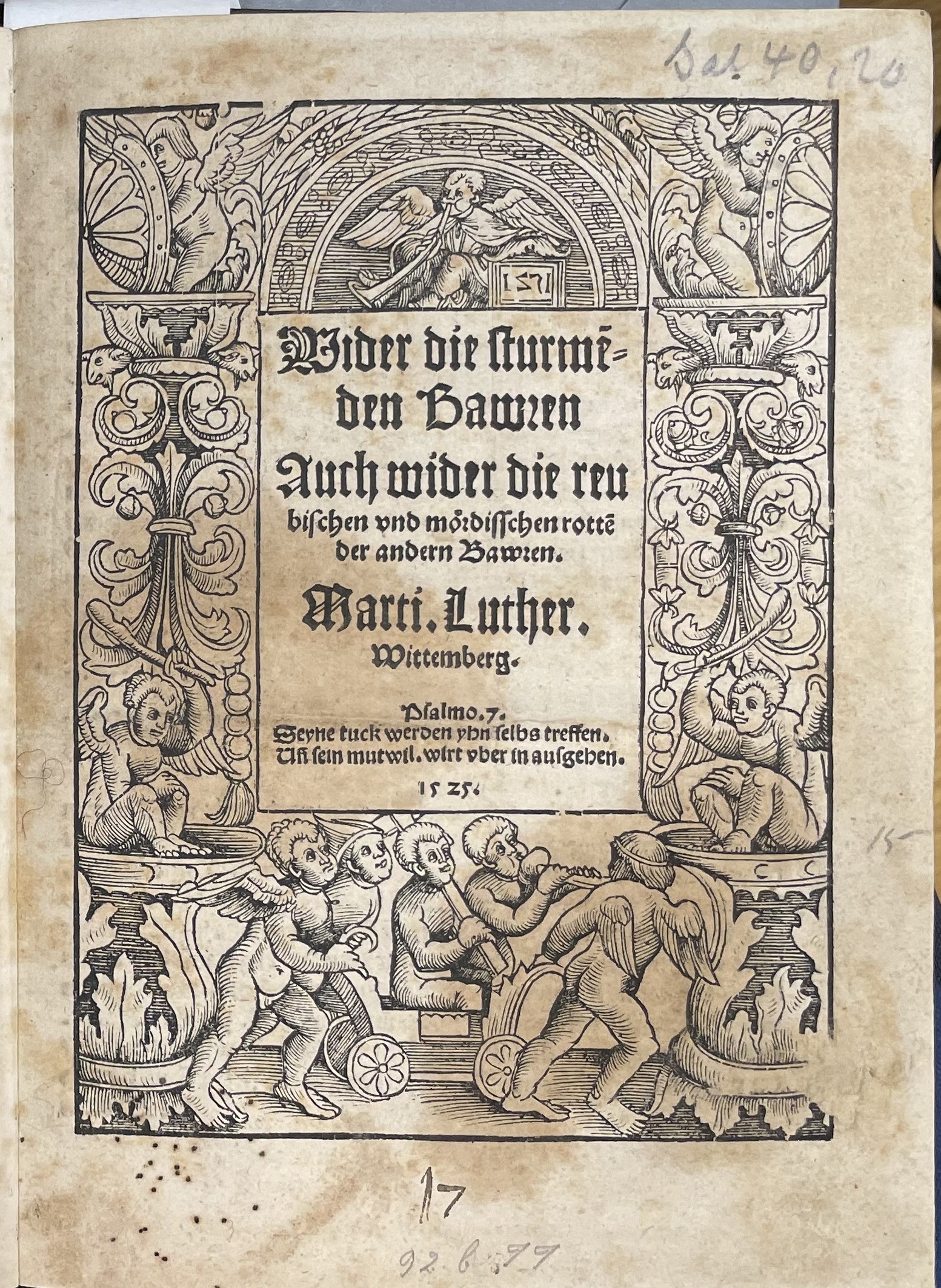 Widder die Stuͤrmenden Bawren Martinus Luther.